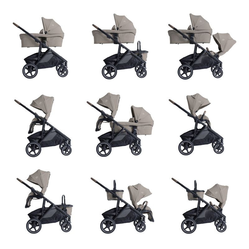Akár 10-féle módon használható szimpla babakocsiként, és több mint 20 variációban iker- vagy testvérbabakocsiként.