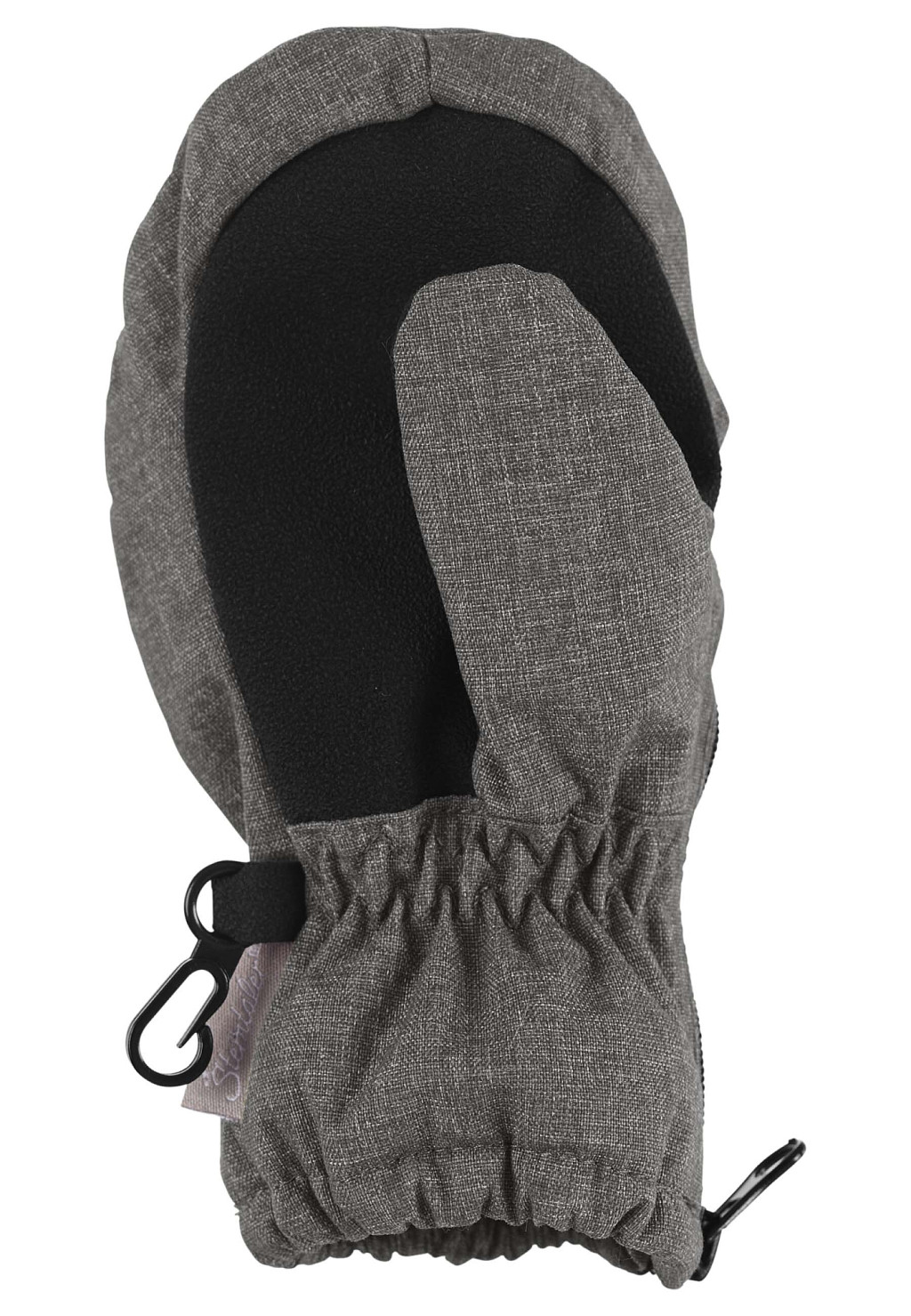 A kesztyű rövid mandzsettával ellátott, melegen bélelt, vízlepergető, lélegző funkcionális anyagból készült. A gyermekkesztyűk Thinsulate béléssel rendelkeznek, amely kiváló hőszigetelést biztosít, még akkor is, ha hosszabb ideig kint van a kicsikkel. A praktikus oldalsó cipzár nagy kényelmet biztosít fel- és levételkor, a körbefutó rugalmas szalag pedig kényelmesen illeszkedik a csukló köré.Vízálló, csúszásmentes anyag, amely ideális kirándulásokhoz és hóban való túrázáshoz. Az egyik kesztyű oldalán kis karabiner található, a másikon pedig gyűrű van, így a két kesztyű pillanatok alatt össze van kötve, és például használaton kívül a babakocsi fogantyújára rögzíthető vagy könnyebben megtalálható a babakocsiban.