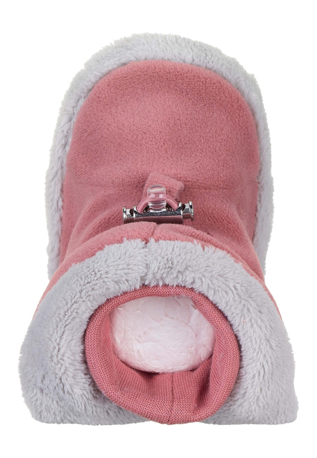 A babacipő mikropolár anyagból készült és kellemes pamut polárral bélelték. Az elasztikus anyagból készült pamut bújós mandzsetta és a zsinórdugó jó tartást és illeszkedést biztosít a kis lábaknak. A csúszásmentes talpnak köszönhetően babája megteheti az első lépéseit melletted.