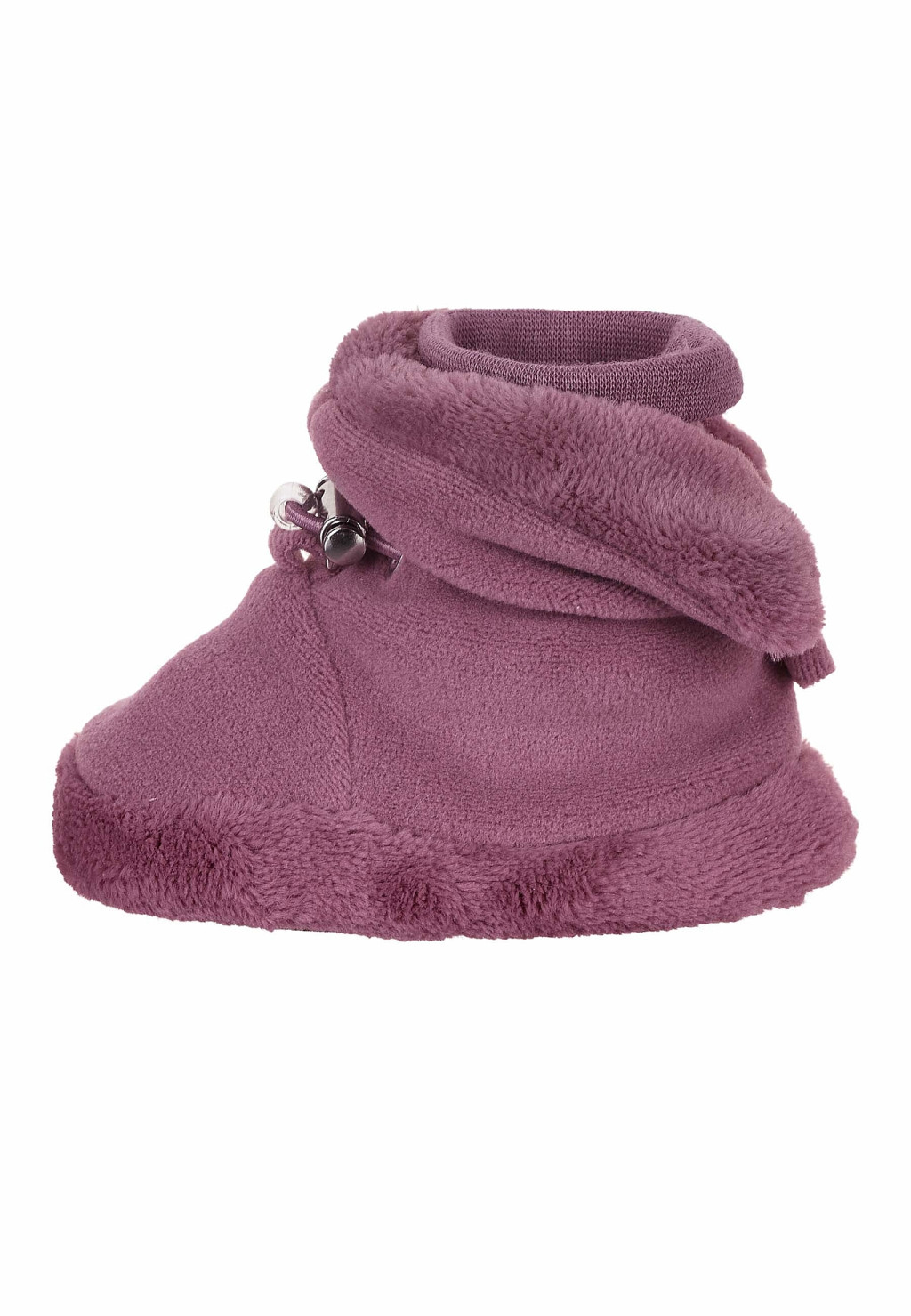 A babacipő mikropolár anyagból készült és kellemes pamut polárral bélelték. Az elasztikus anyagból készült pamut bújós mandzsetta és a zsinórdugó jó tartást és illeszkedést biztosít a kis lábaknak. A csúszásmentes talpnak köszönhetően babája megteheti az első lépéseit melletted.