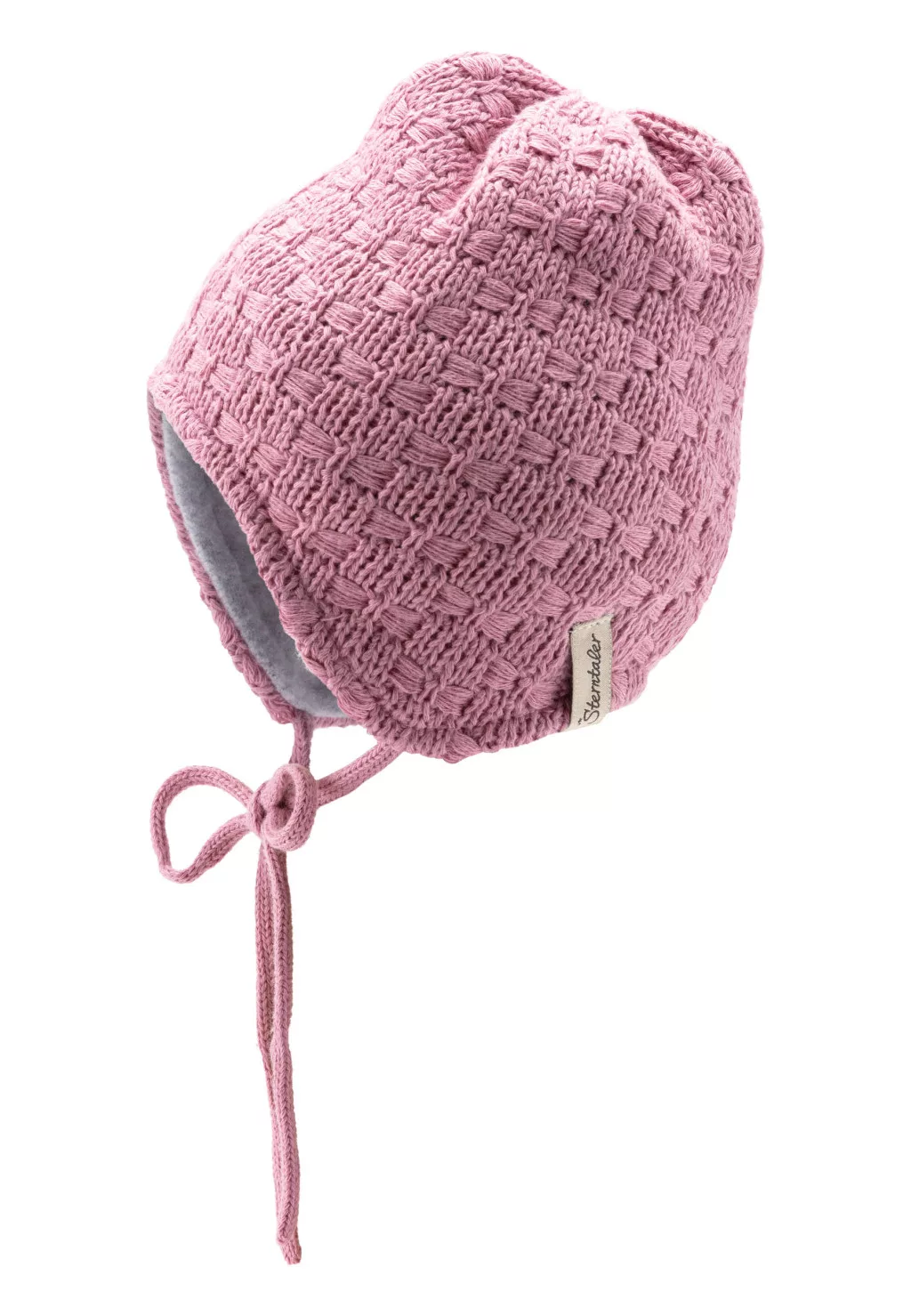 Kötött sapka fülvédőkkel és megkötővel - nőies és meleg.