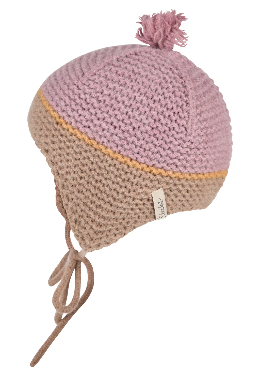 Ez bojttal ellátott, báránygyapjúból készült kötött sapka játékos megjelenést kölcsönöz. Puha tapintású, meleg, sokoldalú darab különleges bájjal. A beépített fülvédő rész és a megkötők gondoskodnak a tökéletes illeszkedésről.