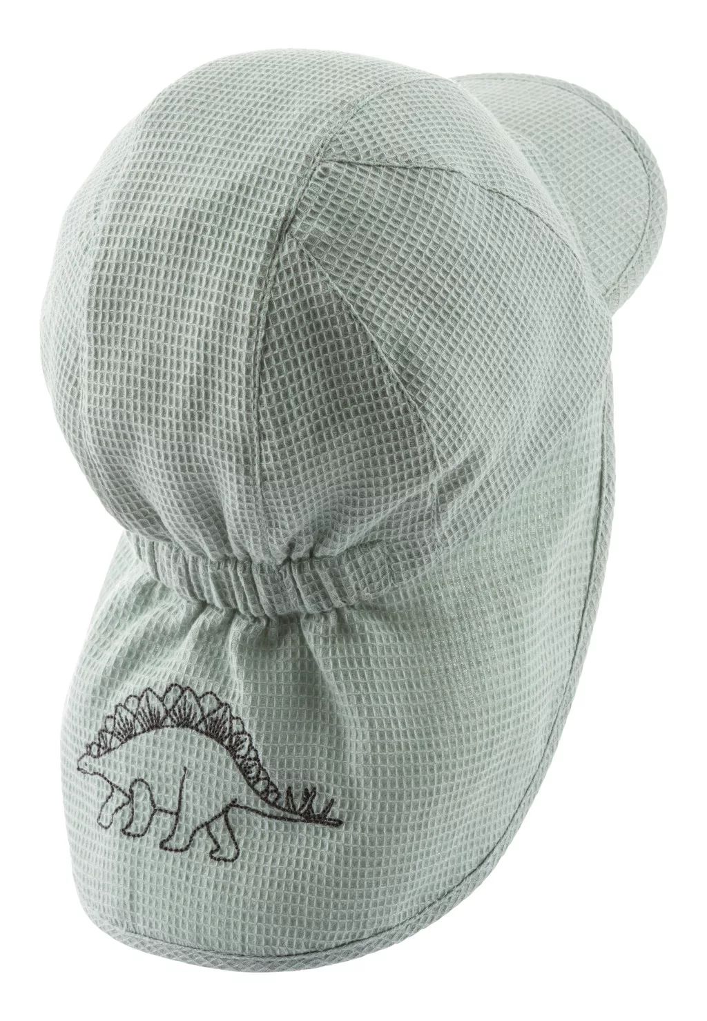 Sapka nyakvédővel és UV-védelemmel, dinoszaurusz hímzéssel.