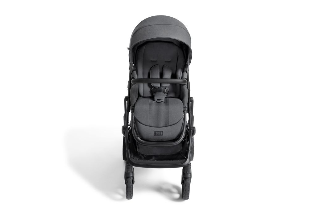 Az extra nagy és defekttűrő gumiabroncsok gumírozottak és habszivaccsal töltöttek. A hátsó kerekek keretfelfüggesztéssel, a két első kerék pedig egyedi felfüggesztéssel rendelkezik. Ezenkívül a speciális flex-komfort ülés 50%-kal simább utazást biztosít - akár az erdőben, akár a városban, gyermeked könnyedén gurul majd a világban. Te pedig stresszes helyzetekben is nyugodt maradsz: A mágneses Autoclick övcsatokkal könnyedén rögzítheted a babádat akkor is, ha a dolgok kissé hektikusra fordulnak. Ráadásul a cipődet minden megállásnál megkíméli: a praktikus ShoeSaver fék felülről működtethető, és a színes kijelző mutatja, hogy a fék aktiválva van-e. A pelenkák, a kézitáska, a váltóruhák és a bevásárlások a nagy kosárban tárolhatók, amely különböző rekeszeivel okosan rendet tart.
